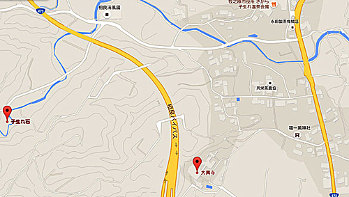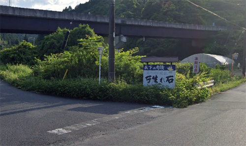 西萩間ICから、国道473号を「さがら子生れ温泉会館」の看板に沿って向うと、「子生まれ石」標識がある。