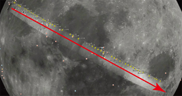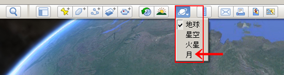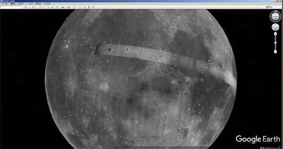 グーグル・ムーンは「Google earth」のメニューバーから「月」を選択することで、月面の衛星写真を閲覧することが可能になる。