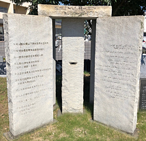 未来への道標となる誓いが10項目にわたって刻まれている有名な石碑であります。