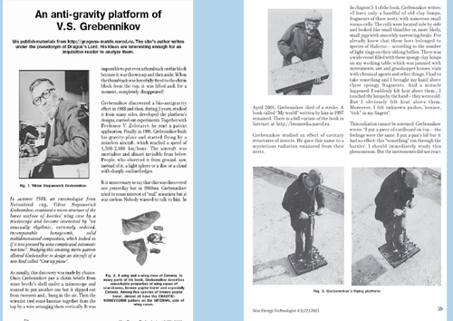 グレベニコフ教授は、この原理に基づいた反重力装置の実験を行いました。