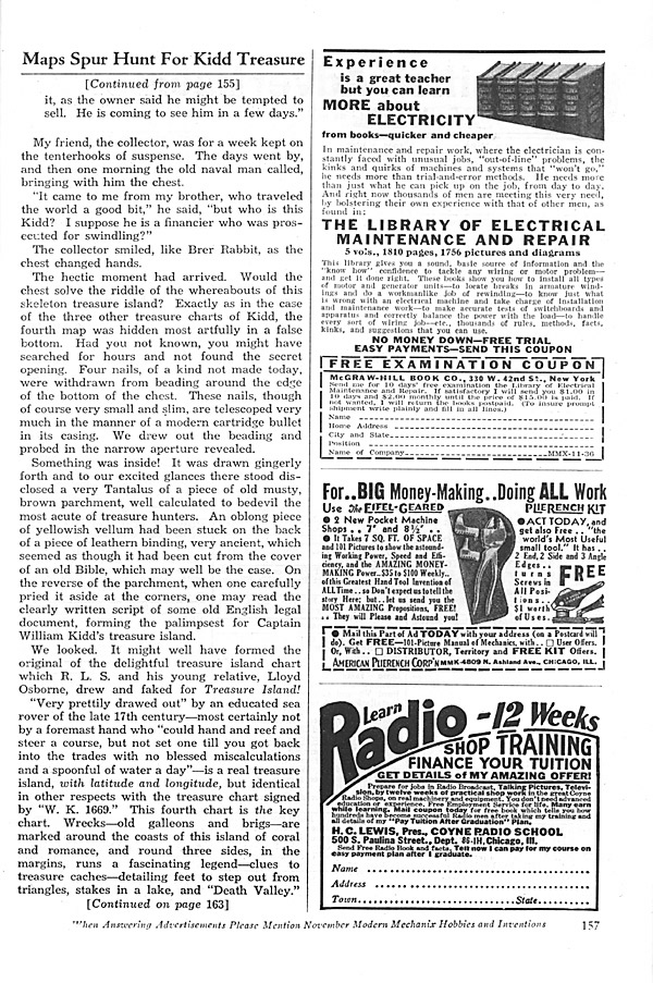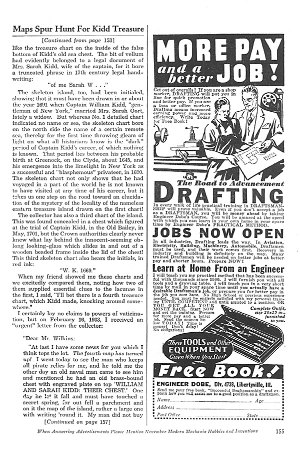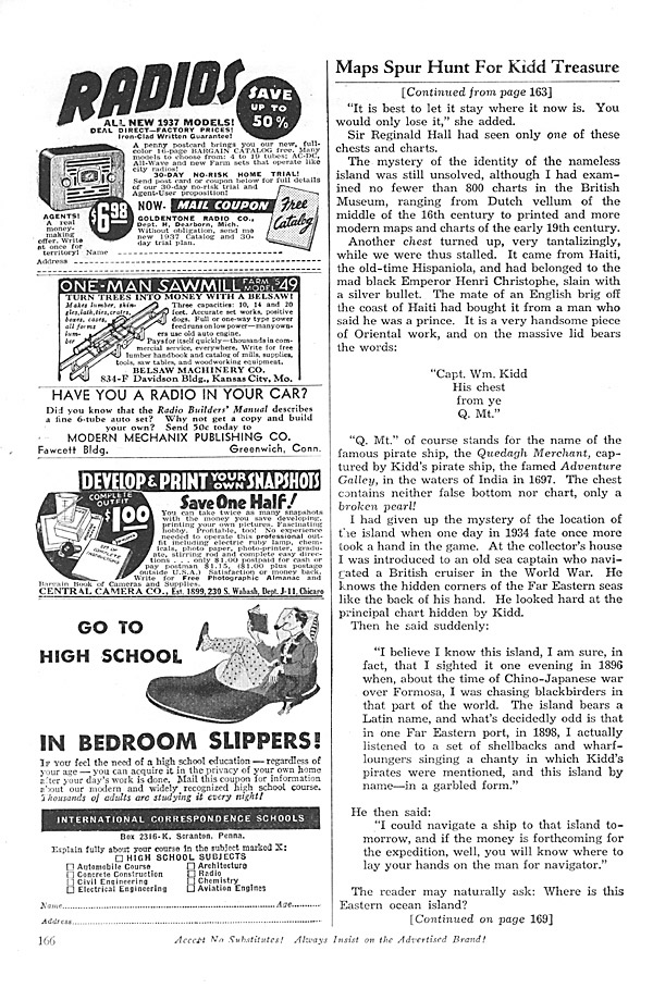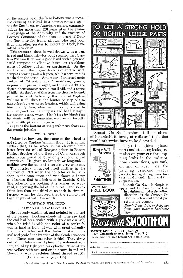 もし成功したら応分の謝礼をいただく」というもので、 前年秋発行の「MODERN MECHANIX」という雑誌に掲載された島の地図の複写が入っていました。
