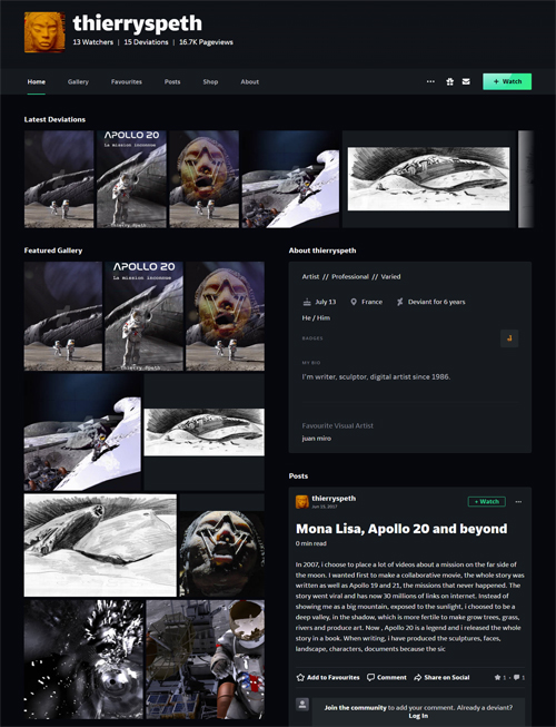 内容は、1971年に起こったアポロ15号のミッションで撮影された写真によって、月の裏側に墜落した巨大な宇宙船が発見されたという設定で物語が展開される。 元宇宙飛行士のウィリアム・ラトリッジなる人物は実際には存在せず、月の裏側で地球外文明も月のモナリザもSF小説の中の話だった。 ティエリー・スペス氏のサイトURL