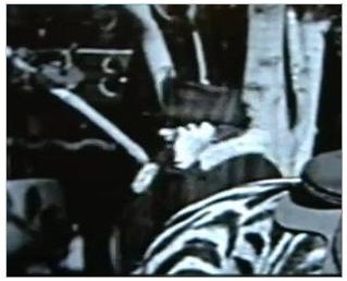当時、ラッパ型補聴器は発明されていたのだが・・・・話す相手もいないのに話をしている。