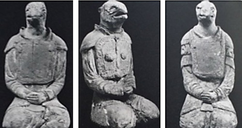格好は人間なのだが、3体とも頭が動物なのだ!