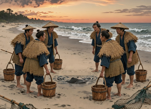 人々は漂着したその女を気の毒に思いながらも、へたに関わってお上に知れては大変と、大事になることを恐れて女を助けず、再び舟に戻して沖に返してしまった。