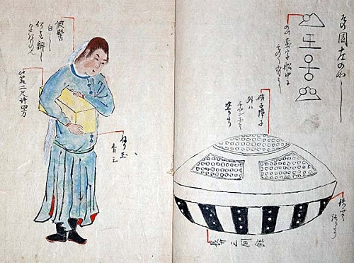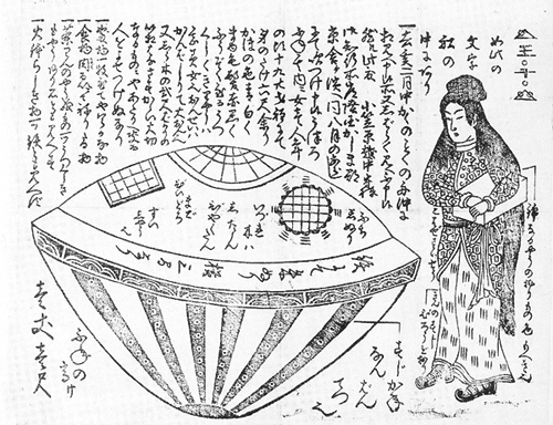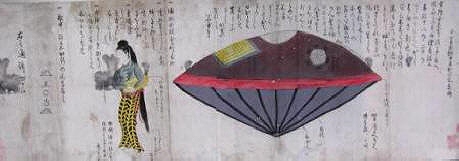 この「うつろ舟」の話は江戸時代、茨城県沖に出現したという、曲亭馬琴の兎園小説「うつろ舟の蛮女」(1825年刊行)が有名で、大まかな内容は・・・・・・