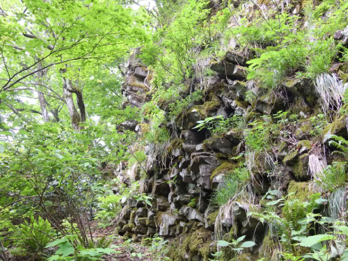 (尖山は海底火山のある地形で岩稲累層といわれる地形で、円錐形の海底火山とされている。かって火山から流れ出た溶岩が、ゆっくり冷え固まった柱状節理・・・のようだが・・)