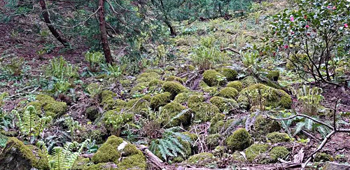 (これは岩海とよばれ、もともとこの場所にあった大きな基盤岩石に節理にそって割れ、長期間にわたって雨で破片は洗い流され、おおきな玉石が重なりあってゆるい傾斜の谷に残ったと考えられる)。