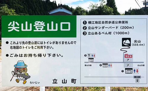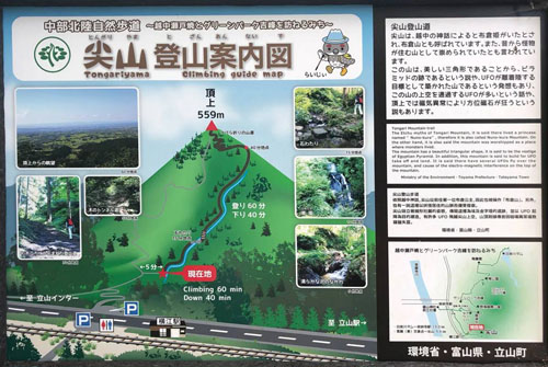 背後に北アルプスの秀峰が控えた、その名の通り先端が尖った標高559mの尖山(とんがり山)で、地元では「とがり山」と呼ばれて親しまれている。