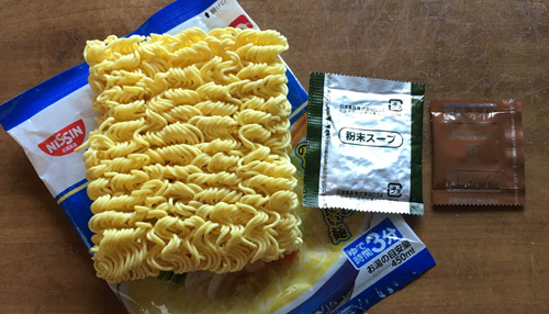 袋の中は油揚げ麺、粉末スープと調味オイル。