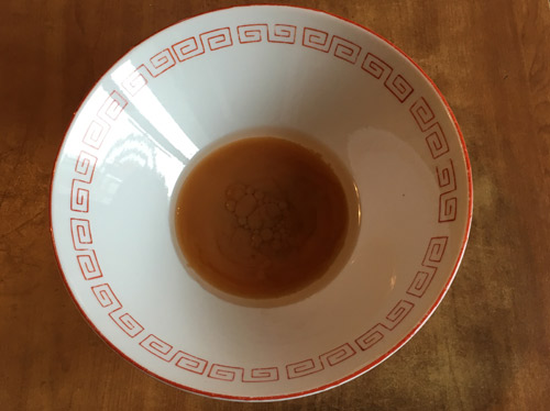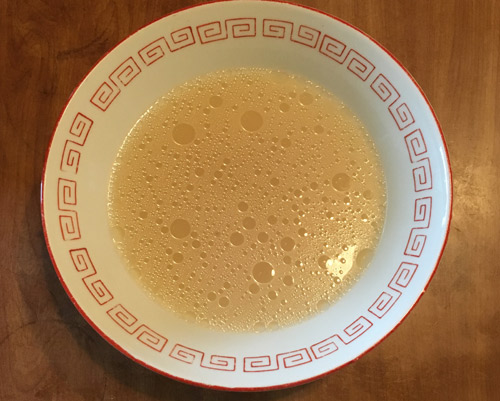温めた丼に液体スープをいれる。