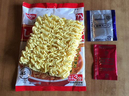 麺はポークエキスやしょうゆを練りこんだ油揚げ麺。