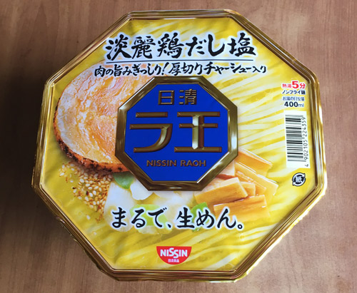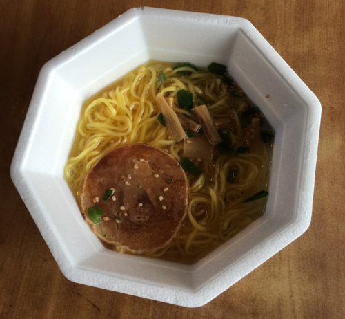 厚切り焼豚、メンマ、ネギなども入って申し分ないのだが、個人的には袋麺(塩味)の方が透きだ。