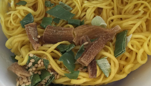 かやく袋の中はネギ、メンマ、炒り胡麻