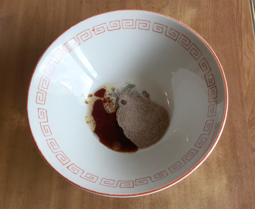 粉末スープと調味ベースを入れた・・・