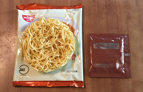 スープ(醤油、植物油脂、食塩、香味油、糖類、香辛料、メンマパウダー、大豆食物繊維)、加工でん粉、調味料(アミノ酸等)、かんすい、炭酸Ca、カラメル色素、増粘多糖類、香料、酸化防止剤(ビタミンE)、カロチノイド色素、ビタミンB2、乳化剤、ビタミンB1、香辛料抽出物、(原材料の一部に卵、乳成分、豚肉を含む)