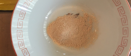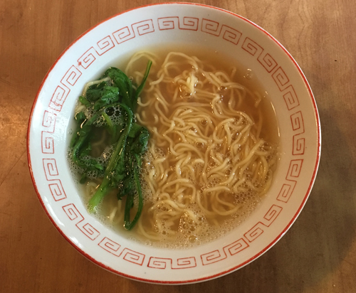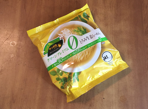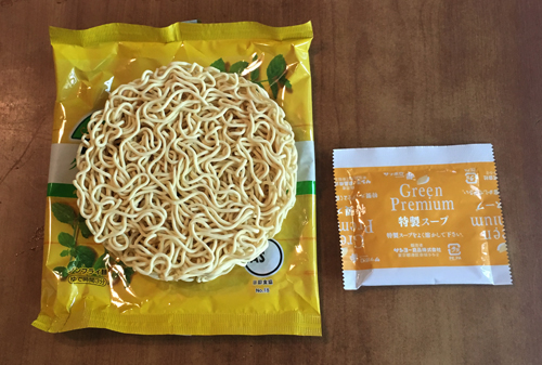 ノンフライの白っぽい麺とスープ袋。