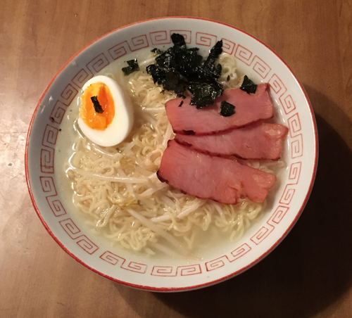 ポークエキスの旨味と、香味野菜(ニンニク、ショウガ)で香り付けした味わい深く、まろやかなとんこつらーめんです。