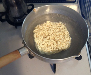 かやくと麺を鍋に入れてと・・・