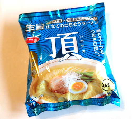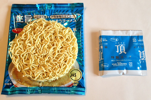 めん(小麦粉、食塩)、スープ(たん白加水分解物、食塩、チキンエキス、植物油脂、塩こうじ、ポークエキス、鶏脂、香辛料、野菜エキス、昆布エキス、糖類)、加工でん粉、調味料(アミノ酸等)、酒精、かんすい、レシチン、クチナシ色素、増粘剤(キサンタン)、酸化防止剤(ビタミンE)、香料(原材料の一部に乳成分、ごま、大豆を含む)
