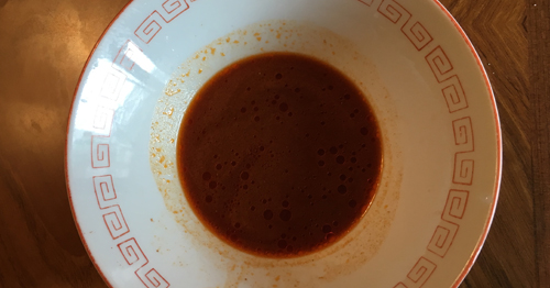 粉末スープと旨辛タレを混ぜ合わせる・・・からそ〜〜ぉ