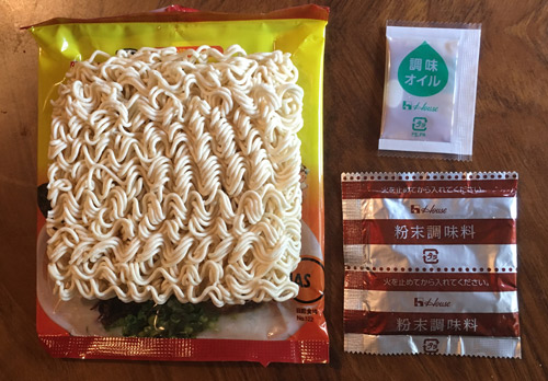 麺と粉末スープ、そしてこのラーメーンの特徴「特製調味オイル」。