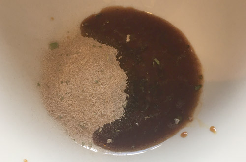 播州ラーメン独特の甘口の醤油味・・スープの粉末と液体。