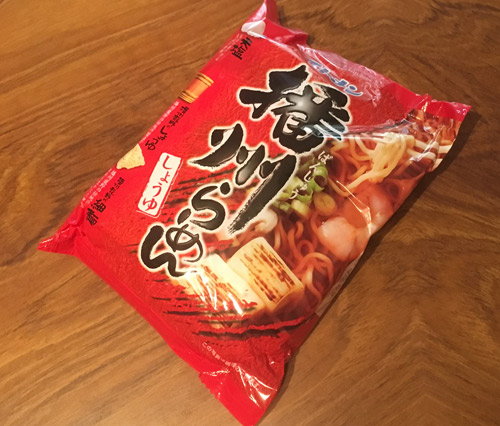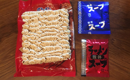 麺細めの麺で、スープは粉末と液体の二つが入っている。