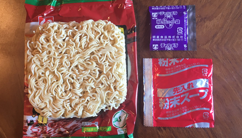 麺と先入れ粉末スープ、秘伝の小袋・・・
