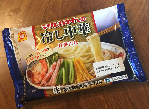なめらかでもちもちとした食感のストレート麺と、酸味をおさえたさわやかでコクのある甘口スープを合わせた、マルちゃんの冷やし中華/甘酢だれ。