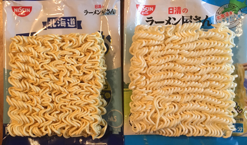 旧 函館しお味と麺を比べてみた・・・右、旧 函館しお味-左、函館しお