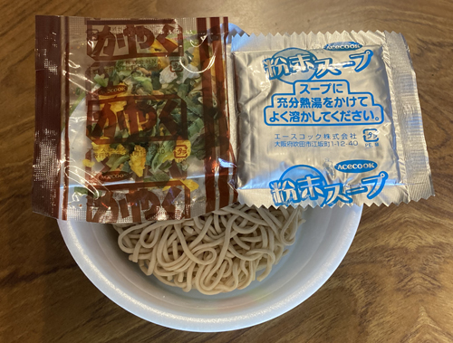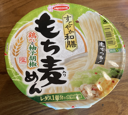 ●原 材 料 ;油揚げめん(小麦粉(国内製造)、植物油脂、もち大麦粉、食塩、植物性たん白)、スープ(チキンパウダー、食塩、乳化油脂、砂糖、チキン調味料、香辛料、酵母エキス、魚介調味料、カツオブシパウダー、野菜パウダー、コンブエキス、たん白加水分解物、オニオンエキス、シイタケパウダー、ゆず胡椒パウダー、全卵粉)、かやく(キャベツ、卵、ねぎ、味付鶏肉そぼろ、唐辛子)/調味料(アミノ酸等)、炭酸Ca、増粘剤(加工でん粉)、微粒二酸化ケイ素、炭酸K、酸化防止剤(ビタミンE)、炭酸Na、香料、カロチノイド色素、(一部に小麦・卵・乳成分・ごま・さば・大豆・鶏肉・豚肉を含む)