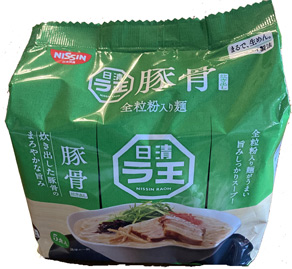 ●原 材 料 ;めん(小麦粉(国内製造)、小麦全粒粉、食塩、植物油脂、卵粉、植物性たん白、チキン調味料、大豆食物繊維)、スープ(ポーク調味料、食塩、豚脂、乳化油脂、鶏脂、デキストリン、糖類、植物油脂、ごま、粉末しょうゆ、紅しょうが、香辛料、ねぎ)/調味料(アミノ酸等)、かんすい、リン酸Ca、増粘多糖類、香料、焼成Ca、酸化防止剤(ビタミンE)、カラメル色素、香辛料抽出物、乳化剤、酸味料、ビタミンB2、ビタミンB1、野菜色素、フラボノイド色素、(一部に小麦・卵・乳成分・ごま・大豆・鶏肉・豚肉を含む)