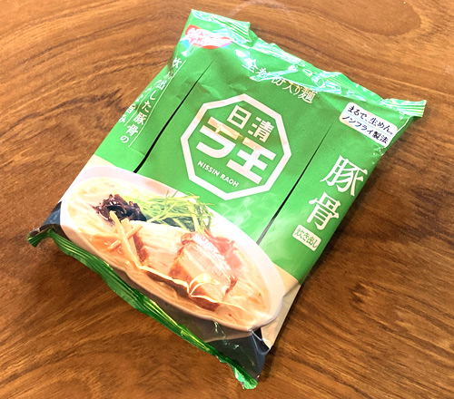 極細麺だけどスープの絡みはよく、ラ王のもちもち麺は旨い。
