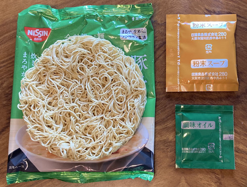 極細麺と液体スープ、調味オイル。麺が細いので当然ゆで時間も短く1分半!