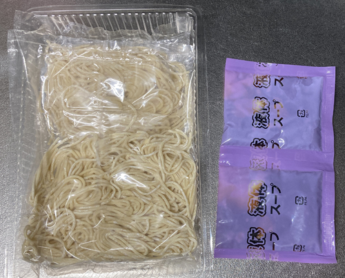 〔スープ〕醤油、食塩、食用油脂、濃縮鶏ガラスープ、アミノ酸液、かつお節エキス、チキンエキス、ホタテエキス、こんぶエキス/調味料(アミノ酸等)一部に小麦、大豆、豚肉、鶏肉、ごまを含む。