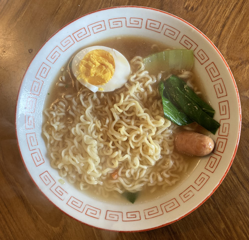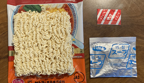 中は麺と粉末スープ、いつも通りの七味スパイス付き。