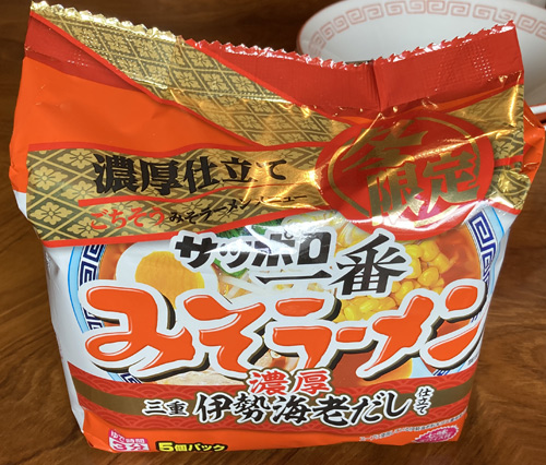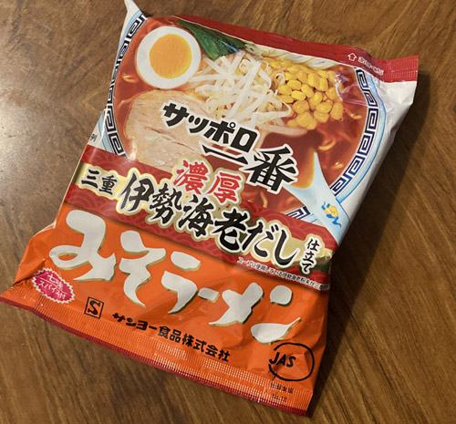「サッポロ一番 みそラーメン」に三重県産伊勢海老の風味を合わせたという、冬限定品・・