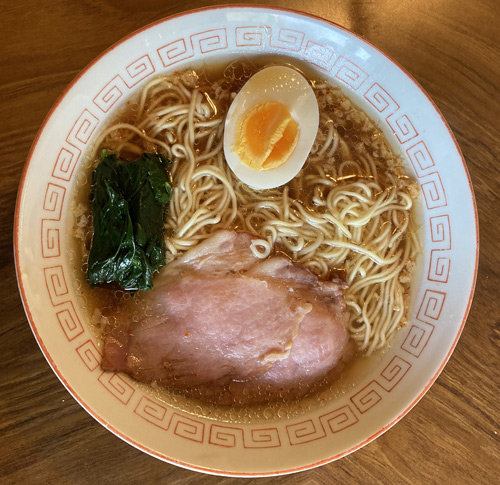 弾力と粘りがある熟成麺のような食感で、なめらかでのどごしの良いノンフライ麺とポーク・チキンの旨味をベースに、濃厚感たっぷりの背脂が加わり、アクセントににんにくを利かせた自家製だし使用の醤油味のスープ。