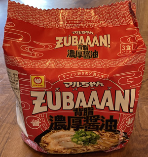 「マルちゃんZUBAAAN! 背脂濃厚醤油」「旨コク濃厚味噌」「にんにく旨豚醤油」 の三種類があって、それぞれ3食パック。