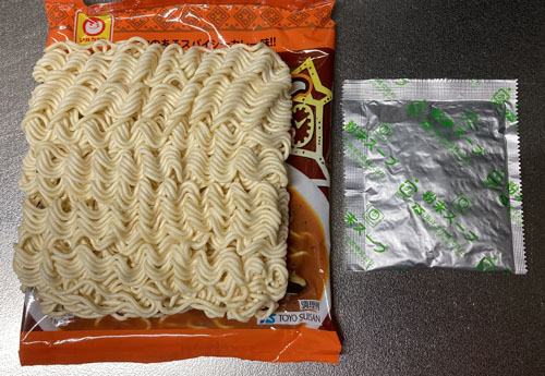 ●原材料名 油揚げめん(小麦粉(国内製造)、植物油脂、精製ラード、食塩、植物性たん白、卵白)、添付調味料(砂糖、香辛料、食塩、粉末野菜、チキンエキス、しょうゆ、たん白加水分解物、豚脂、香味油脂、酵母エキス)/調味料(アミノ酸等)、カラメル色素、炭酸カルシウム、かんすい、増粘多糖類、酸化防止剤(ビタミンE)、香料、香辛料抽出物、(一部に小麦・卵・乳成分・大豆・鶏肉・豚肉・ゼラチンを含む)