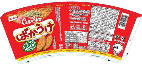 9月に新発売になったサンヨー食品の「サッポロ一番 カップスター ばかうけ青のりしょうゆ風味」、栗山米菓の「ばかうけ」とサンヨー食品の「カップスター」のコラボ商品です。