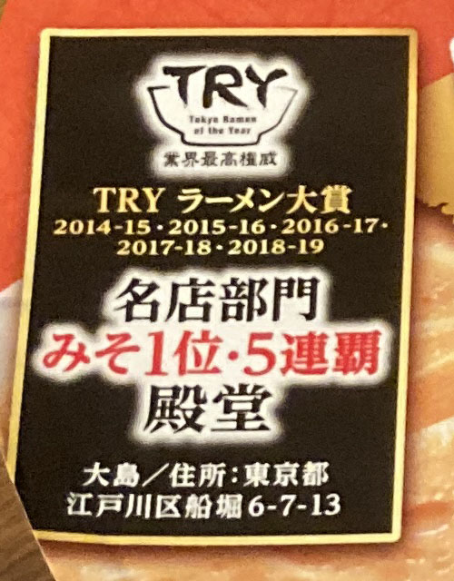 ※TRYとは...「Tokyo Ramen of the Year」の略。ラーメン界で著名な6 名の審査員によって決定される、ラーメン業界最高権威のアワード。