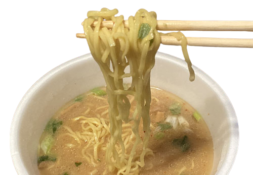麺は生麺ゆでてうまいまま製法仕上げ、なめらかさ・透明感・弾力があり生麺のような食感に仕上げています。