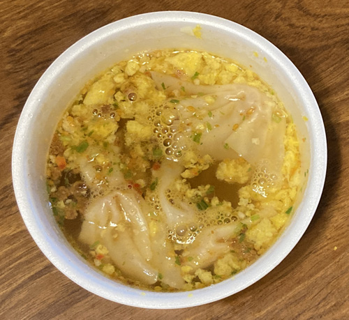 ワンタンの中にちゃんと具が入っているのは嬉しい!某メーカーのワンタン麺はワンタンの皮だけというのがある(笑)