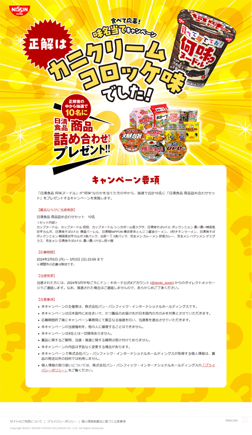 2024年2月5日 (月) 〜 3月3日 (日) の間、味当てキャンペーンのカップヌードル。