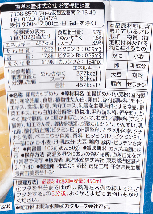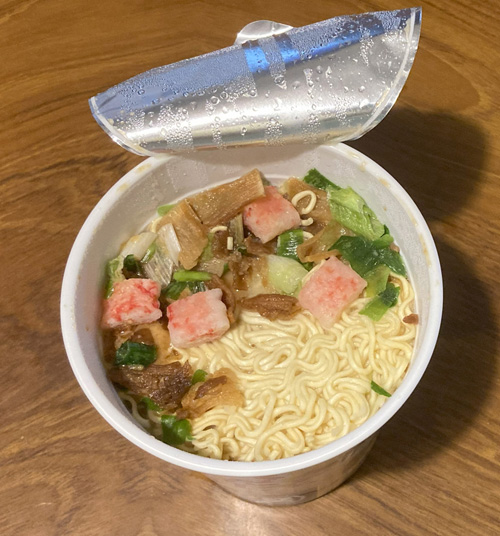 味付豚肉、かに風かまぼこ、メンマ、ねぎ。