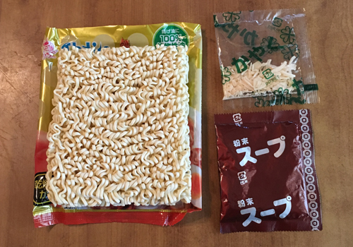 粉末スープと乾燥たまねぎのかやく付き。