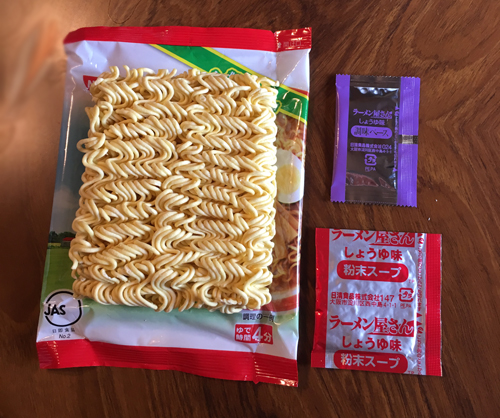 麺はちょっと太麺、粉末スープと調味ベースいり。