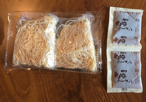 生麺とつゆが2人分入っている。